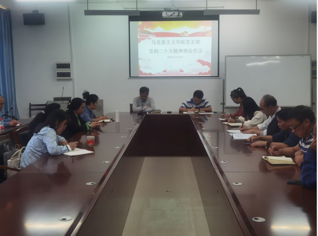 11月8日,马克思主义学院党支部开展党的二十大精神主题党日活动,学习党的二十大报告,要求结合自身的岗位职责把党的二十大报告融入教学工作及思政课堂当中,真正做到入脑入心。