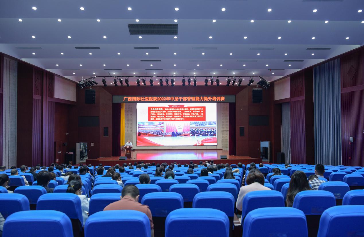附属国际壮医医院党委举办了2022年中层干部管理能力提升培训班,深入学习贯彻党的二十大精神,进一步提高医院中层干部的综合素质和能力