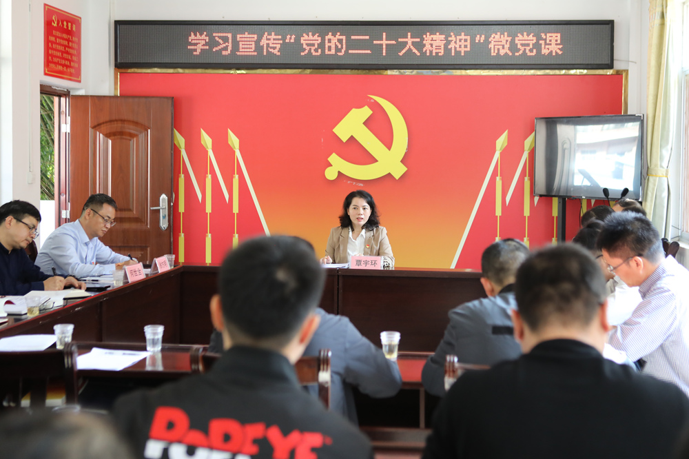 动员会后,覃宇环向驻村第一书记、工作队员、村“两委”赠送了党的二十大学习辅导读本,并为大家上了学习宣传党的二十大精神微党课,详细讲解了党的二十大报告关于乡村振兴的重要部署,并就如何学习贯彻好党的二十大精神提出了明确要求。