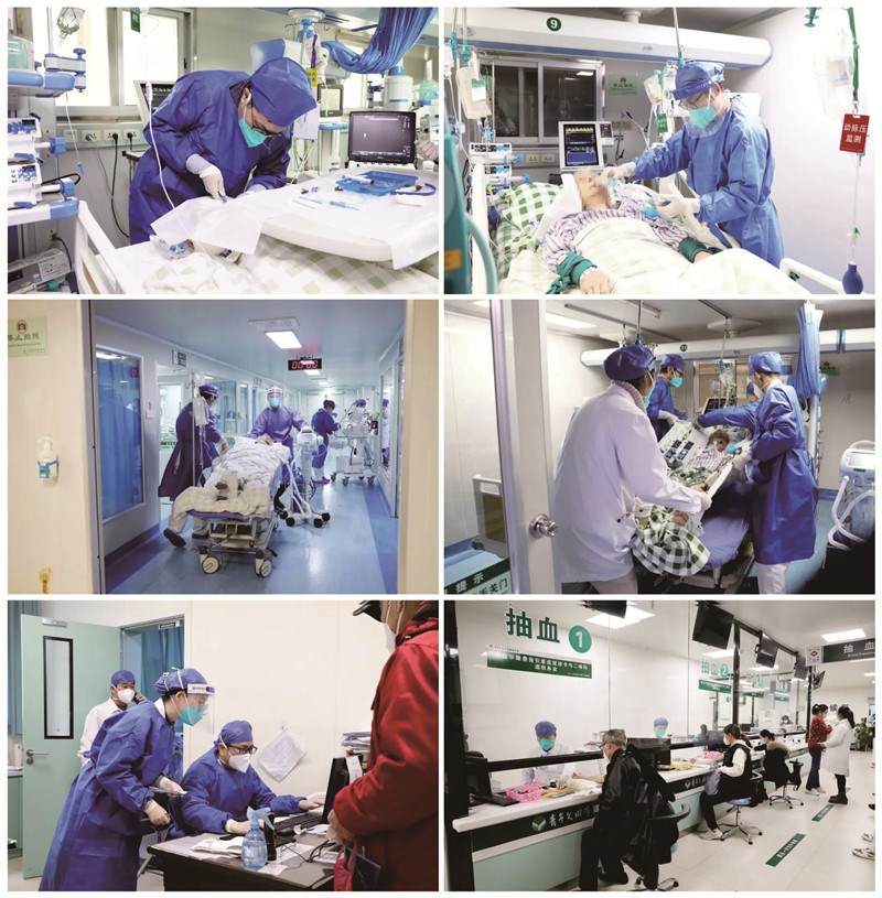 2022年12月,随着社会感染面持续攀升,原本特别忙碌的急诊科、感染性疾病科工作量和工作难度陡增。但大家没有退缩,“我马上赶回来”、“我感觉好多了,申请返岗” 、“我症状轻微,可以顶上”……有的医生护士从外地下乡赶回支援科室,所有医生护士及救护车司机带病坚守岗位,最困难的时候,三个二线医生、五个一线医生、十几位护士总共不到20人承担平时急诊两层楼门诊病房及院前急救100多人的医疗工作量。