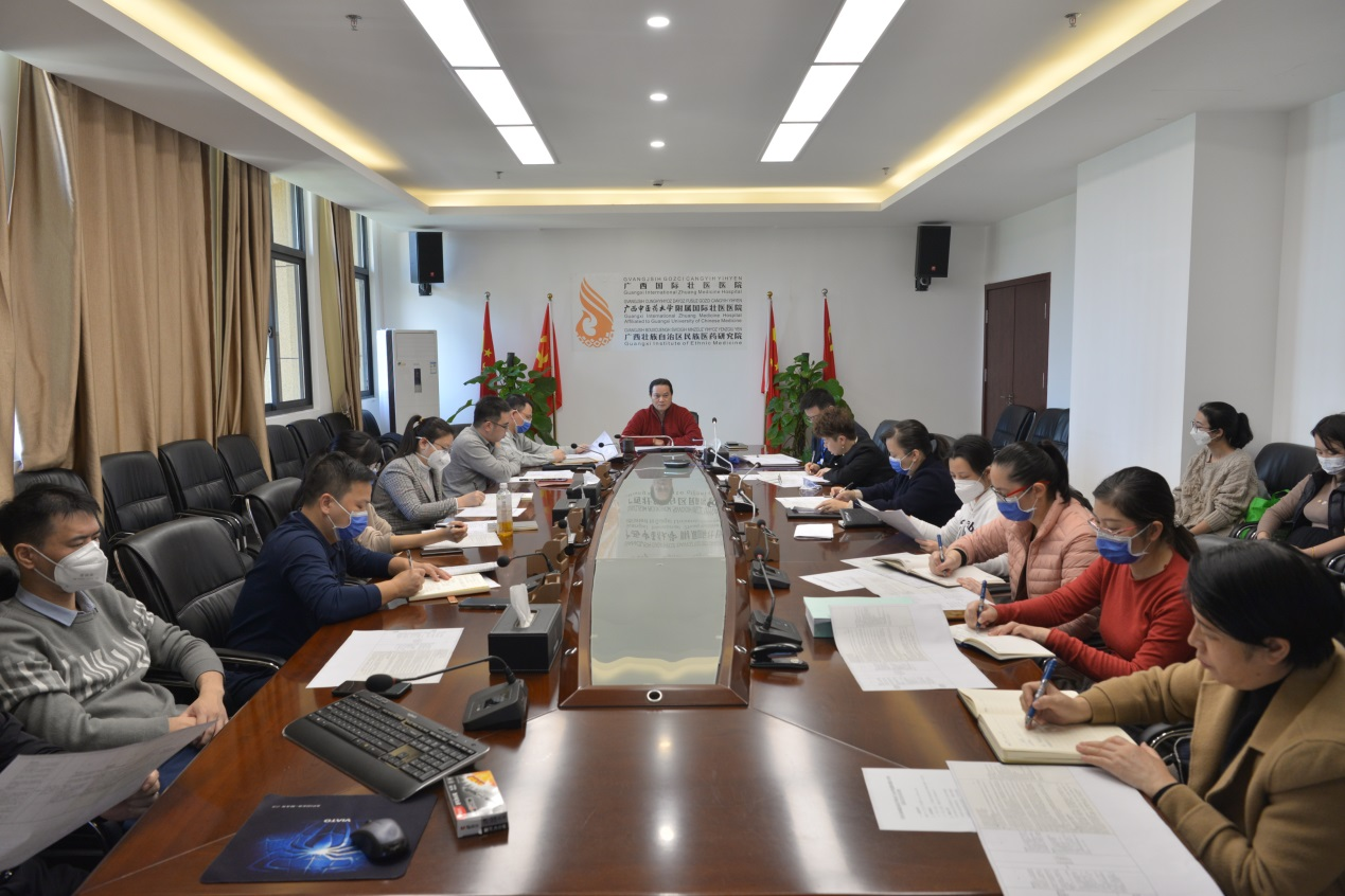 1月13日下午,YABO鸭脖壮医毒病临床医学研究与应用创新团队2022年工作总结会在附属国际壮医医院召开。学校党委副书记、团队带头人庞宇舟教授以视频方式出席,医院副院长、癌毒病研究方向组长黄国东及李龙春、李凤珍、翟阳、方刚等线下参会。