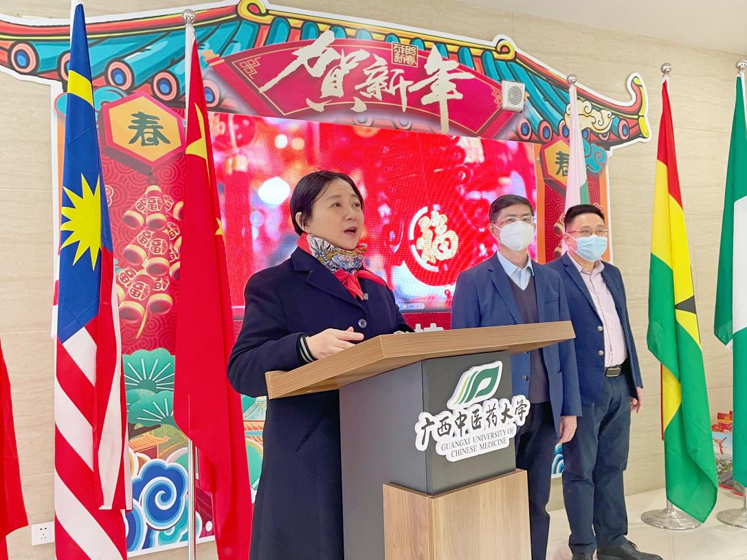 姚春在致辞中向全体师生致以诚挚的新春问候与祝福。她指出,随着中国防疫政策的优化,留学生将陆续返校,希望大家继续努力学习,将疫情对学业的影响降至最低。同时,她还勉励外国同学更加深入地了解中国,成为推动中外民心相通的友好使者,勉励港澳台学生承担起传承祖国传统医学的历史责任,祝愿同学们在新的一年实现梦想,创造佳绩。