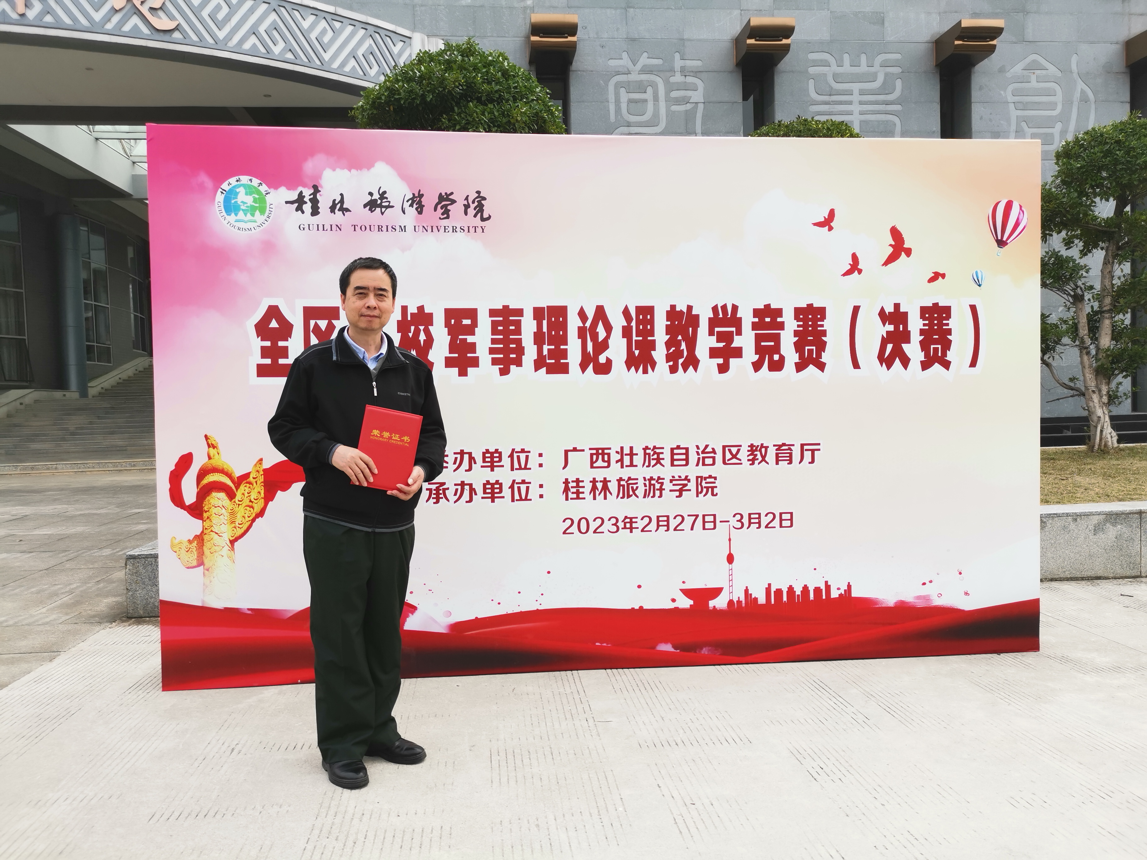 2月27日至3月2日,2022年广西高校军事理论课教学竞赛(决赛)在桂林旅游学院举行,鸭脖蒋闽义老师荣获二等奖。