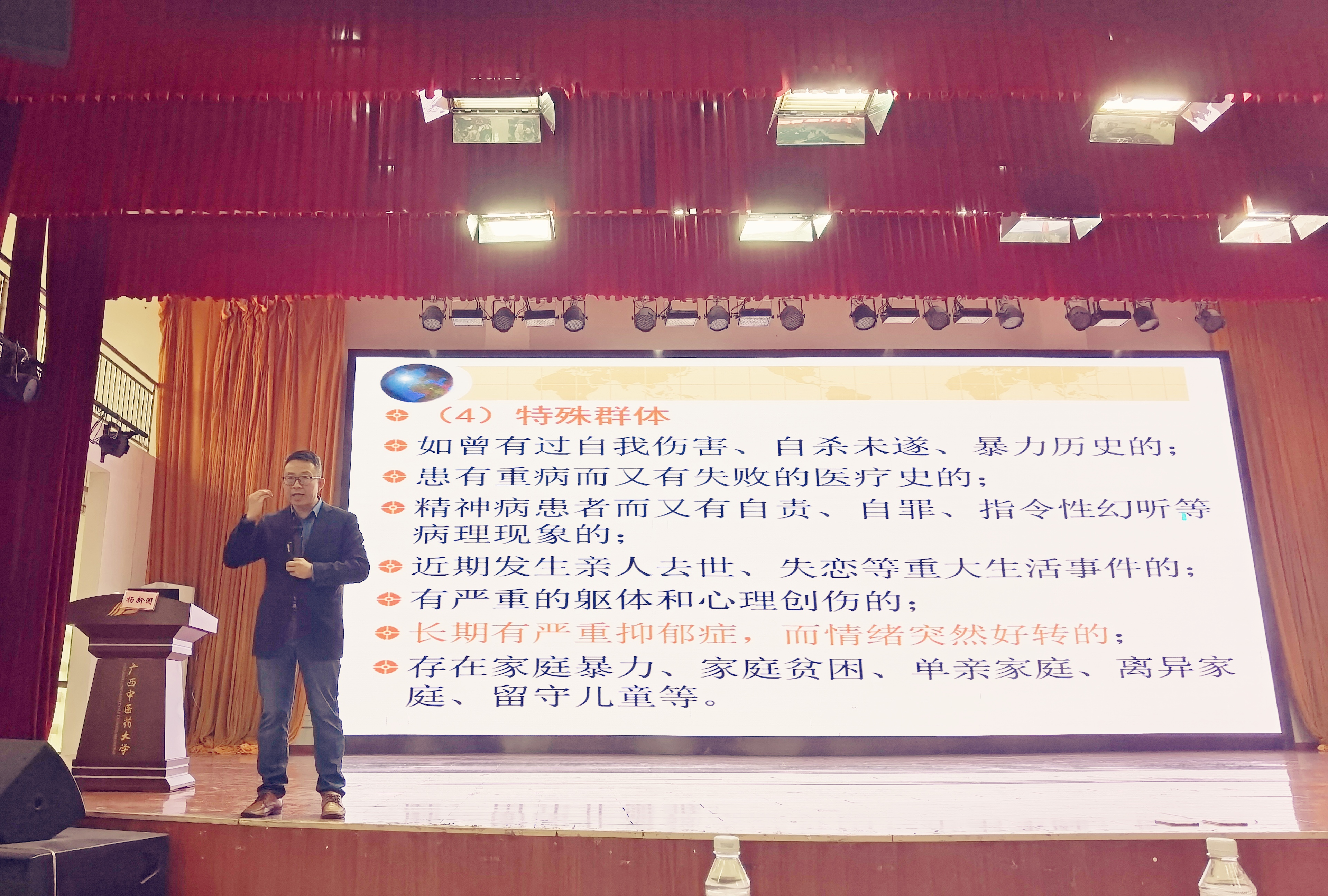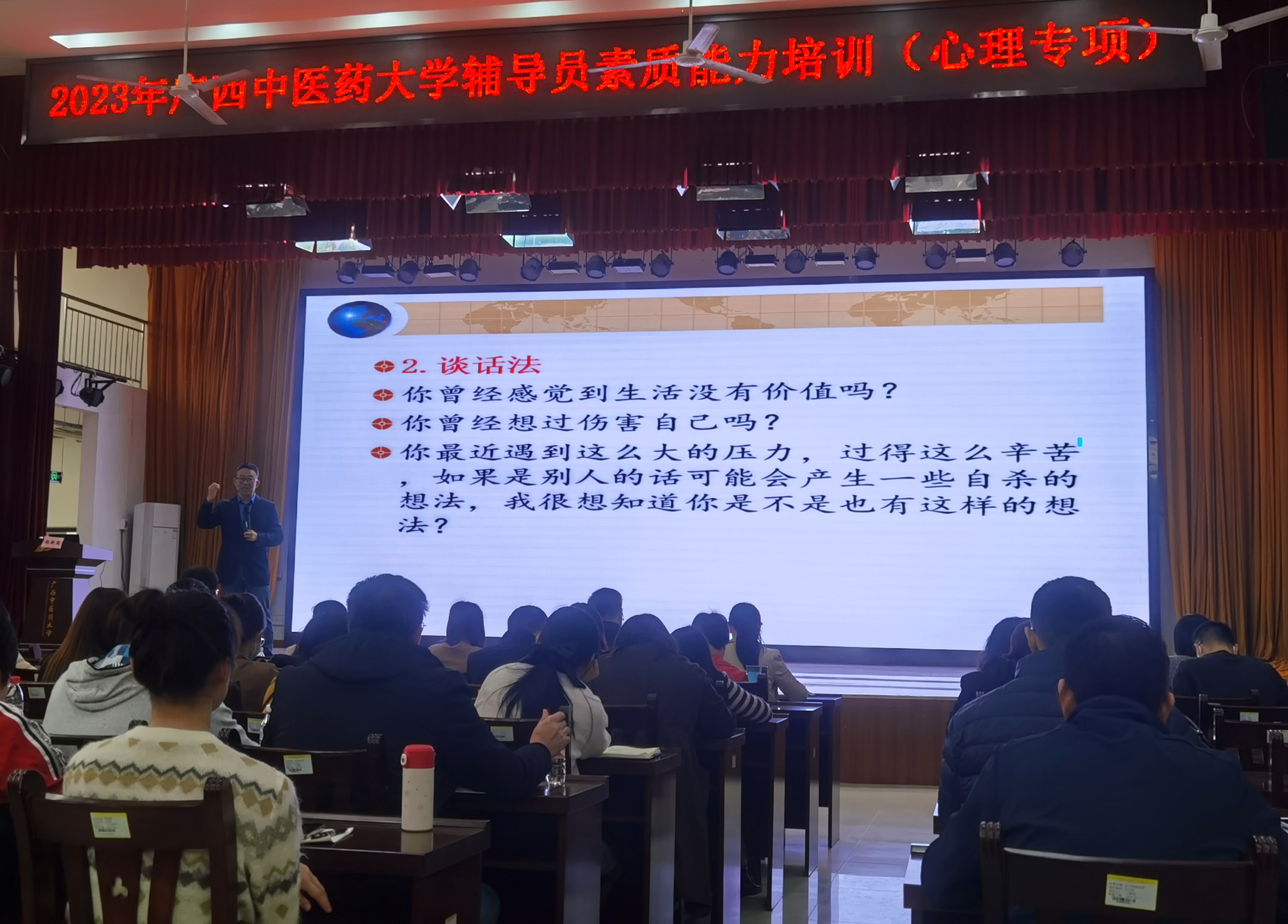 为贯彻落实全国高校思想政治工作会议精神,把大学生心理健康教育作为高校思想政治工作的重要内容,提高鸭脖辅导员队伍的心理服务水平和能力,增强学生心理健康教育工作的针对性和实效性,3月3日上午,学校组织开展了2023年辅导员心理专项素质能力培训,本次培训邀请到广西大学杨新国教授主讲,鸭脖近80名辅导员参加。广西高校大学生“心理健康教育互助共建大行动”鸭脖共建兄弟院校广西外国语学院和YABO鸭脖赛恩斯新医药学院等50余名辅导员也应邀参加了此次培训。
