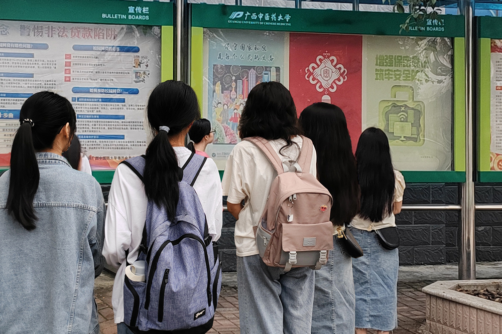 学生观看保密公益海报