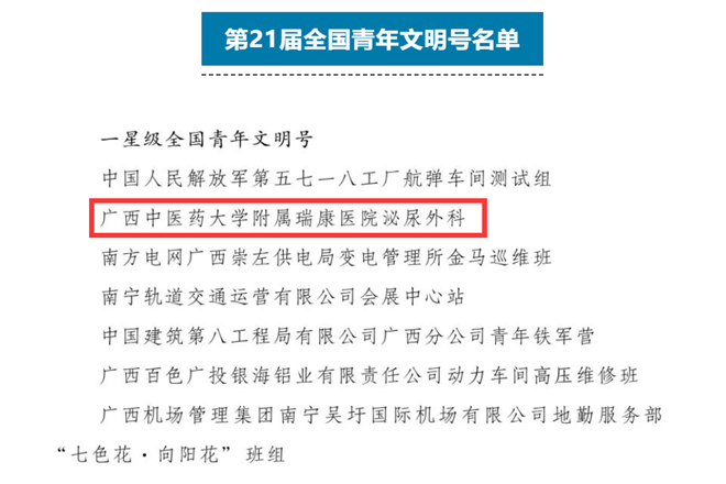 鸭脖附属瑞康医院泌尿外科获一星级全国青年文明号称号