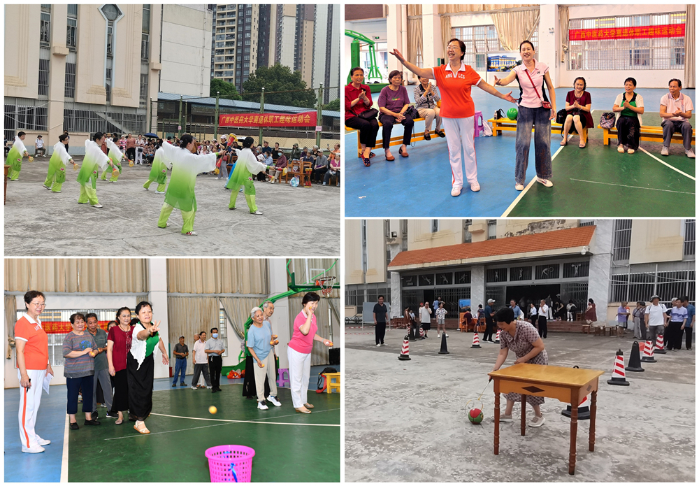 活动以老体协太极队一段精彩的“瑶族长鼓太极和壮族太极绣球”表演开场。接着,开展了根据老同志的特点,因地制宜、精心设计的“投球接力赛”“赶猪(球)进笼接力”“击鼓传球”等集趣味性、娱乐性、运动性和协作性于一体的活动。活动现场欢笑声此起彼伏,许久不见面的老同志们相互问候,相互鼓劲加油,脸上洋溢着喜庆灿烂的笑容,将积极向上的精神风貌展现得淋漓尽致,快乐溢于言表。