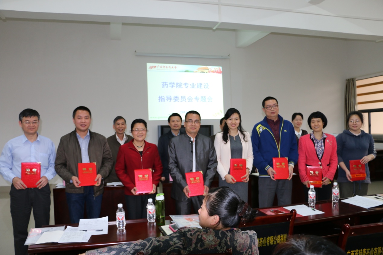 会上学校副校长罗伟生作指示。他说,药学院负责建设的8个专业,我们应该借本科教学审核评估的契机,规范专业建设,围绕专业发展规划、教学内容与课程体系改革、教材建设、实践教学(实验课程体系、实验室建设、实践基地建设)、师资队伍建设等内容,集中讨论研究专业建设面临的问题,解决8个专业的发展规划。需要认真思考专业建设的目标及内容,区分新办专业、优势专业进行分类建设。各个专业要有清晰的发展规划,发展规划要具有前瞻性、科学性和可行性。罗伟生副校长还为我院8个专业的建设指导委员会委员颁发了聘书。