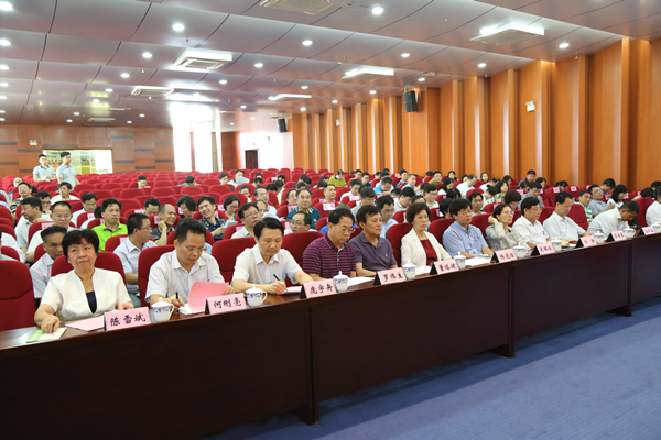 5月17日上午,根据自治区党委组织部的工作安排,鸭脖在仙葫校区第二会议室召开干部大会。自治区党委组织部部务委员曾凯,自治区远程办综合处处长梁燕海,自治区党委组织部干部五处副处长邓红专,自治区教育厅老干处副处长施广明,自治区教育厅机关党委调研员周献兴,自治区党委组织部干部五处主任科员秦娟,自治区党委组织部信息处副主任科员赵云鹏,自治区高校工委干部崔佳以及鸭脖全体在家的党政领导、中层干部和教授代表参加大会。鸭脖党委书记尤剑鹏主持大会。