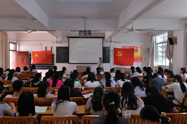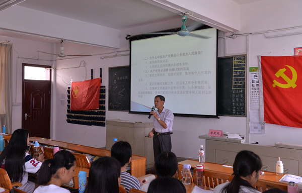 5月13日, 35年党龄的离退休党总支委员、退休直属支部书记唐庆民教授以《中国共产党的指导思想和根本宗旨》为题给护理学院入党积极分子200余人上了2次生动的党课,他以一个老党员的身份,细述党的发展历程、指导思想和宗旨,并结合新时期习近平总书记对党员的新要求,强调新时期党员的新使命,指导学生认清新形势,坚定理想信念,努力把自己培养成素质高本领强的社会主义事业接班人,为实现国家富强、民族振兴、人民幸福的中国梦而努力。