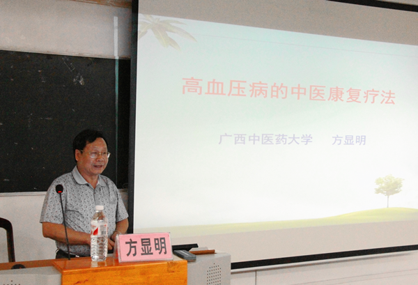 在迎接本科教学工作审核评估之际,鸭脖老科技工作者协会、老教授协会和离退休工作处共同举办的老教授论坛拉开序幕。老党员、协会会长方显明教授于5月17日晚在明秀校区西梯二教室举行《高血压的中医药防治》学术讲座,讲座吸引了研究生、本科生、进修生约200余人,现场座无虚席。方显明教授是国家二级教授,第四批全国老中医药专家学术经验继承工作指导老师,中医内科心血管疾病学术带头人。他引经据典,以清晰的思路、生动风趣的语言从“什么是高血压、高血压的发病机制、高血压的中医病证研究、高血压的中医康复治疗”等几个方面深入浅出地给同学们进行了讲解,并把自己从医几十年的宝贵经验毫无保留地与同学们分享,讲座精采纷呈,大家受益非浅。