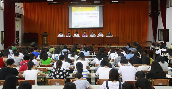 5月24日下午,由自治区教育厅、国家开发银行广西支行联合组织开展的广西高校2016年诚信教育巡回讲座的首场讲座在鸭脖举行。此次巡回讲座是为了贯彻《自治区党委自治区人民政府关于加强和改进大学生思想政治教育的意见》精神,切实加强大学生的诚信教育,培养大学生的诚信意识,推动我区国家助学贷款工作的持续健康发展,也是2016年全区“学生资助工作宣传月”的重要内容之一。