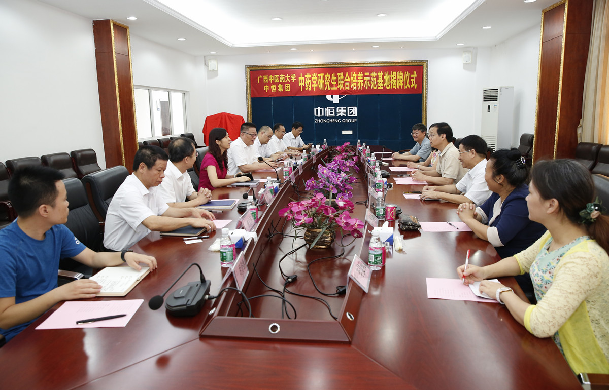 中恒集团广西梧州制药(集团)股份有限公司是国家级高新技术企业、国家创新型企业,广西十佳企业、百强企业,拥有很好的教学科研资源。鸭脖与中恒集团广西梧州制药(集团)股份有限公司于2015年合作申报共建“中药学研究生联合培养示范基地”并获自治区学位办审批立项。今后,校企双方将以基地为依托,充分发挥双方优质资源,开创合作共赢的新局面。