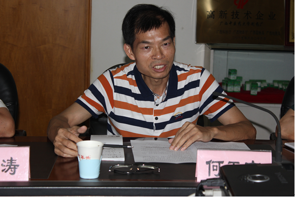 制药厂何天富厂长在会上发言
