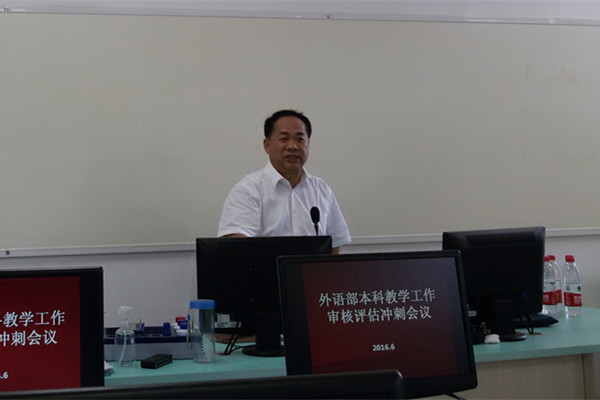 2016年6 月3日上午,距离教育部对鸭脖本科教学工作审核评估仅有10天。为了更好地推进落实本科教学工作审核评估工作, 外语部本科教学工作审核评估冲刺会议在仙葫校区2栋教学楼5楼505教室举行。罗伟生副校长出席会议并讲话,外语部主任陈立群主持会议。