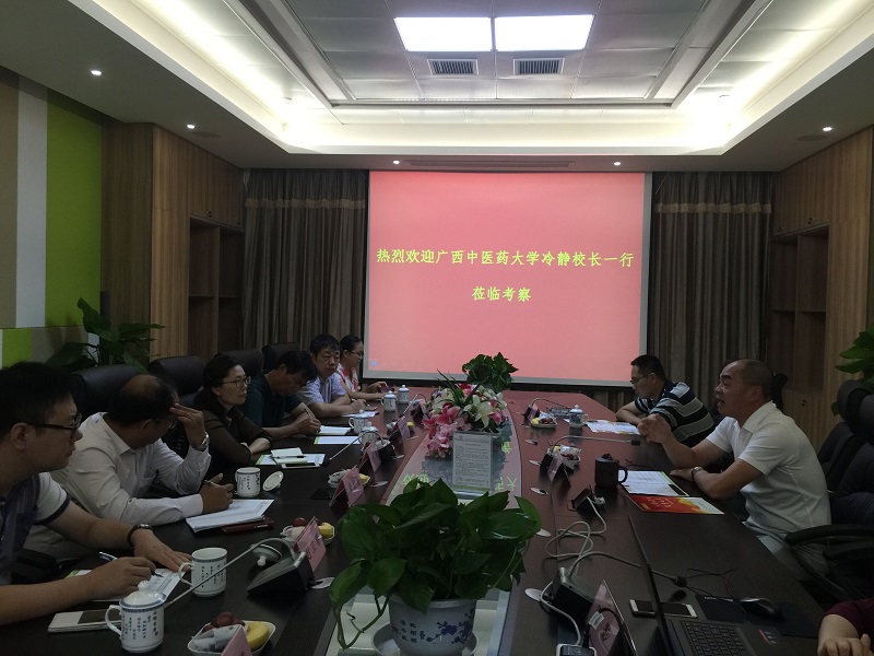 双方代表进行了座谈。无锡格菲电子薄膜科技有限公司戎裕平生产副总、刘海滨博士介绍了石墨烯薄膜及产品研究进展与现有可应用开发的石墨烯产品等情况。无锡脑镁素生物医药科技有限公司骆权峰总经理介绍了MagteinTM系列产品的研发、生产情况,并对石墨烯新材料的特性、发展前景进行了说明,希望能借助高校的技术力量与科研平台在石墨烯的中医药产品研发与医疗器械的临床试验等方面与鸭脖开展广泛的合作。冷静副校长介绍了鸭脖的发展历程、科研团队与科研基地、中医药研究成果、尤其是壮瑶医药研究特色与成果等情况,希望以此次考察为契机,发挥学校自身的优势,积极与企业对接,探索有效的产学研结合、研发新模式,加大校企双方的合作。