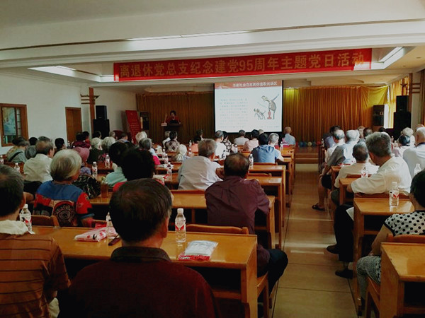 6月22日上午,在中国共产党建党95周年来临之际,学校党委副书记、纪委书记杨连招在明秀校区大学生俱乐部给全体离退休职工上了一堂题为《带头践行社会主义核心价值观,夕阳红释放正能量》的党课。