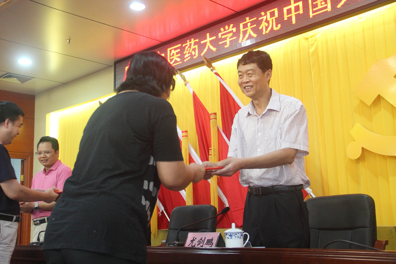 尤剑鹏在会上发表讲话。他代表学校党委向学校向学校全体共产党员致以节日的问候!向受表彰的先进基层党组织、优秀共产党员和优秀党务工作者表示热烈的祝贺!尤剑鹏书记指出,一直以来,学校按照“加强党建、提高素质、立德树人、科学发展”的要求,为学校中心工作的顺利开展提供了强有力的思想和组织保障。学校各级党组织和全体党员要重温党的历史,牢记历史使命,认清当前形势,明确责任目标,坚持突出全面从严治党主线,以“两学一做”学习教育为契机,全面推进学校党的思想建设、组织建设、作风建设、党风廉政建设和制度建设,不断凝聚学校内涵发展的强大动力,进一步推动学校党建工作上水平上台阶,为实现学校“十三五”目标起好头、开好局。尤书记的讲话指出:一是历史选择了中国共产党,中国共产党有能力带领全国人民实现中华民族伟大复兴的中国梦。二是扎实开展“两学一做”学习教育,争做“四讲四有”合格党员。目前,学校各级党组织按照上级的部署和要求,正扎实有效推进“两学一做”学习教育,不断增强党组织的凝聚力和战斗力。三是坚持党要管党从严治党,全面加强党的建设。坚持和完善党委领导下的校长负责制,不断改革和完善管理体制机制;强化基层党组织整体功能,切实把学校基层党建工作抓实抓好;加强学校宣传思想和意识形态工作;建立健全权力监督制约机制,坚持不懈推进党风廉政建设和反腐败斗争;完善和落实党建工作责任制。