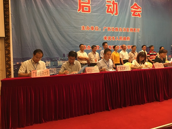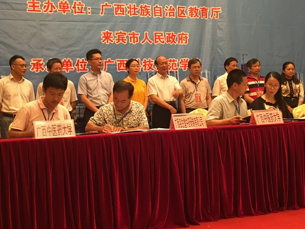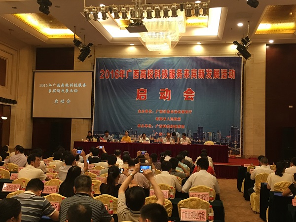 为推动高校科技服务地方经济社会发展,6月28—29日,由自治区教育厅和来宾市人民政府主办,广西科技师范学院承办的“2016年广西高校科技服务来宾新发展活动”在来宾隆重举行,自治区教育厅副厅长孙国友,来宾市委书记农生文,来宾市委常委、宣传部部长、副市长韦凤云,以及来自区内60多所高校,来宾市40多家政府相关部门、行业与企业代表共计400余人参加活动。鸭脖戴铭副校长带领科技处、科技服务专家和一附院义诊专家等一行10余人参加。