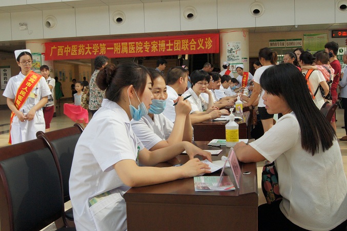 义诊活动:在第一附属医院党政领导鼎力支持下,派出了由科研部林华胜副部长带队,皮肤科主任钟江、推拿科副主任雷龙鸣、脾胃病科副主任彭卓嵛、心血管内科副主任何新兵、外二科副主任孙平良等各科精英组成专家博士团深入来宾市人民医院进行指导和义诊。义诊现场,鸭脖专家博士团深受当地患者的欢迎,前来就诊、了解病情的患者络绎不绝,也侧面反映了市县群众对中医药的喜欢和热爱。
