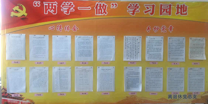 ——引领老党员学习理论知识,提高认识。离退休党总支及时将中国共产党章程、中国共产党廉洁自律准则、中国共产党纪律处分条例、习近平总书记系列重要讲话读本发放给每个党员,督促各支部按照要求制定具体学习计划,并通过细读原文、交流讨论、知识竞赛、撰写心得体会等方式开展学习。对因病或长期不出门的老党员,党总支和各支部采取送学上门的方式,将学习资料送到老同志的手中,促进了学习教育活动的深入开展。离退休党总支还开辟了“两学一做”学习园地,将18位离退休党员的心得体会展示出来,供全体党员学习。