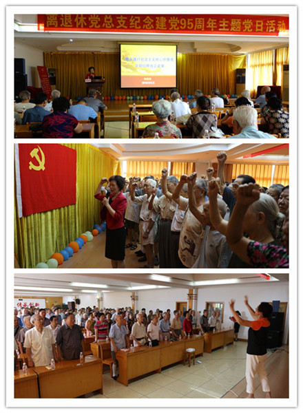 ——引领老党员坚定理想信念,理想永存。在建党95周年即将来临之际,离退休党总支开展了以 “忆党史、念党恩,永远跟党走”为主题的党日活动。学校党委副书记、纪委书记杨连招给老同志上了题为《带头践行社会主义核心价值观,夕阳红释放正能量》的党课,并带领大家齐唱《没有共产党就没有新中国》、重温了入党誓词。通过主题党日活动,老党员们坚定了理想信念,强化了宗旨意识,再次用坚定的誓言表达做一个合格党员的决心,表示要矢志不渝为党和人民的事业奋斗终身。
