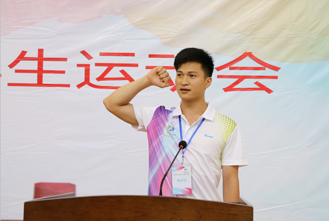 裁判员代表宣誓表示将公正执法,恪尽职守,确保比赛公平公正;运动员代表宣誓表示将严格遵守比赛规程和纪律,顽强拼搏,赛出水平。