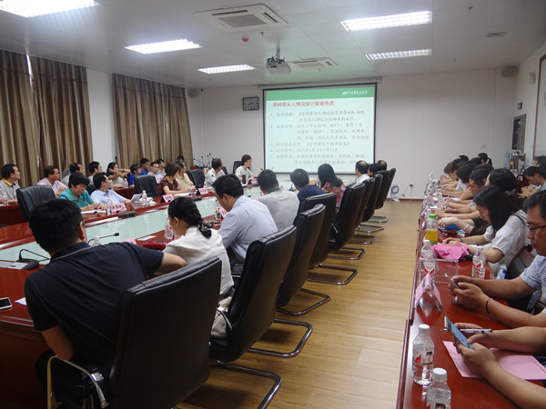 发展规划处唐红珍处长对鸭脖参与全国第四轮学科评估工作进行了阶段性总结,并对今年上半年学校开展的学科建设中期检查情况进行了通报。