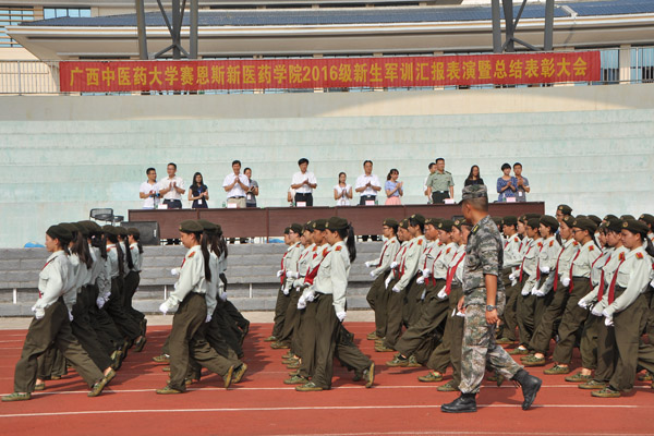 英姿飒爽 军歌嘹亮 ——YABO鸭脖赛恩斯新医药学院隆重举行2016级新生军训汇报表演暨总结表彰大会