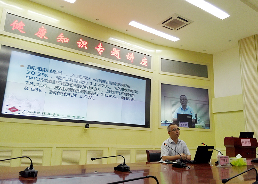 中医一附院康复科副主任王开龙教授作“军事训练中运动创伤的预防和康复”知识讲座