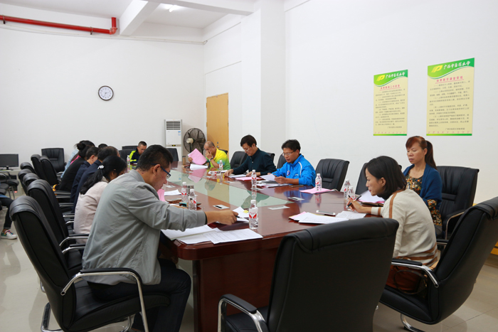 会议上,体育部李荣源副主任介绍了赛会的筹备情况,广西壮族自治区第七届高校教职工羽毛球比赛将于2016年11月9日~12日在鸭脖仙葫校区体育馆举办。截止到10月30日为止,已有43个队报名参赛,参赛教职工人数为574人,同时李副主任对各工作组进行了工作布置。