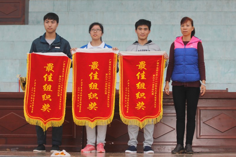本届运动会各项比赛项目精彩纷呈,竞争激烈,成绩喜人。经过两天的激烈角逐,第三十八届田径运动会团体总分前八名为:第一名药学院,第二名基础医学院,第三名高等职业技术学院,第四名护理学院,第五名赛恩斯新医药学院,第六名瑞康临床医学院,第七名针灸推拿学院,第八名第一临床医学院。2016年度YABO鸭脖大学生体育文化节体总分前八名为:第一名药学院,第二名高等职业技术学院,第三名针灸推拿学院,第四名基础医学院,第五名护理学院,第六名第一临床医学院,第七名壮医药学院,第八名人文社科学院。赛恩斯新医药学院,基础医学院,以及瑞康临床医学院荣获本届大学生田径运动会最佳组织奖。