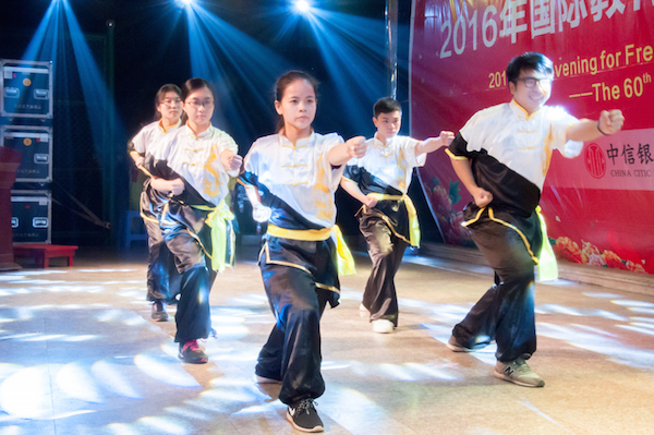晚会首先以乐队活力四射的暖场表演拉开序幕,紧接着国际教育学院学生武术队行云流水般的中国武术表演使晚会渐入佳境。 “2013级国际传统中医班的拜师仪式”是本次晚会的重头戏,来自马来西亚、印尼、缅甸以及香港特别行政区的30多名学生依中国传统拜师古礼,按呈送拜师贴、敬送六礼束脩、叩拜礼、奉茶、发收徒贴等传统程序,向出席的15位鸭脖资深中医名师正式拜师。通过师承名师、朝夕临诊、耳濡目染、衣钵相传,弟子传承名老中医宝贵的临床经验和心得体会,让优秀的国医国术在世界范围内更好地发扬光大。