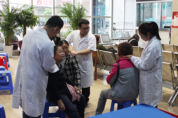 本次活动得到群众们的积极响应,有的与医生积极沟通寻求帮助,有的在护士帮助下测量血压,有的则现场进行推拿手法治疗,现场热闹而有序。据统计,本次活动共为100多人次提供诊疗服务,发放宣传资料300多份。