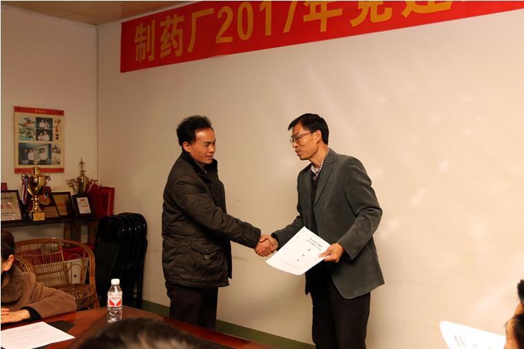 会上,制药厂党委书记、厂长何天富全面回顾了制药厂党委2016年的党建工作,并重点部署2017年党建工作。2017年制药厂党委工作思路是:围绕“一个中心”,坚持“一个理念”,突出“三个重点”,抓好“三项建设”,为实现制药厂2017年“抓销售、保生产、重民生、促发展”总体工作目标提供坚强的思想保证、政治保证和组织保证。