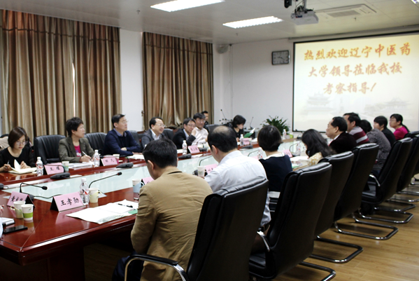 3月24日上午,辽宁中医药大学副校长张立德一行7人到鸭脖调研交流。鸭脖副校长罗伟生、冷静,校长办公室、人事处、教务处、科技处、学生工作处、财务处等部门负责人与张立德一行在图书馆第一会议室进行座谈交流。