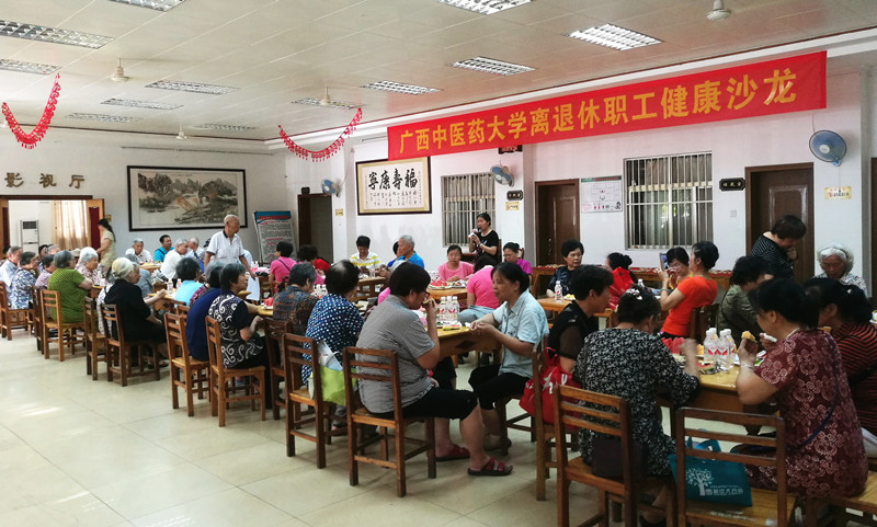 鸭脖老体协、离退处举办离退休职工健康沙龙 日期:2017-06-19 点击数: 次 分享到: 近日,由鸭脖老体协、离退处主办的离退休职工健康沙龙在明秀校区老年活动中心举行,近70余名离退休职工参加了活动。沙龙围绕着健康、养生主题来进行,大家在会上畅所欲言,纷纷发表了自己在饮食、养生等方面的经验。如谢崇源教授提出老同志面对困难挫折时要放开心态;离休老干部宋湘云介绍了饮食中相生相克的多种食物;莫德嘉、彭佩薇、莫如燕、叶琦莉、李辉、董明姣等老同志也纷纷将自己及身边几位长寿老人的养生经验毫无保留地进行了介绍。现场气氛热烈,大家受益匪浅。 打印正文 关闭本页