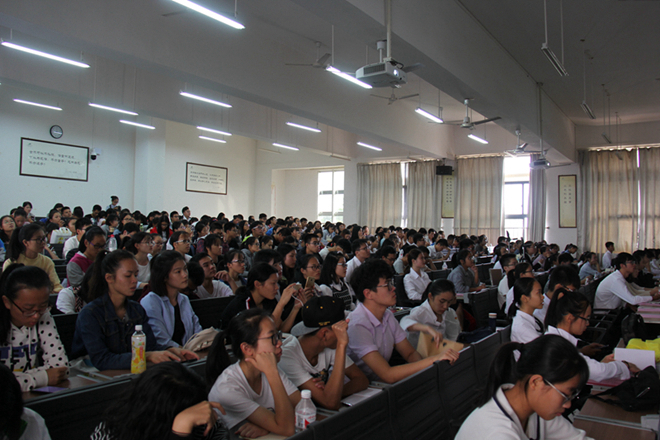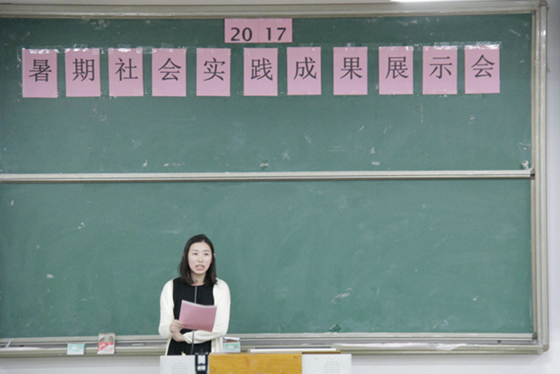2017年10月31日下午,由鸭脖团委举办的2017年“青春喜迎十九大,不忘初心跟党走”暑期社会实践成果展示会在仙葫校区教学楼1-201举行。校团委彭玥老师和黄英老师出席本次活动,十支实践团队代表以及各团支部的学生干部代表参加本次活动。