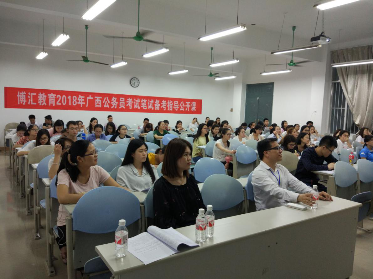 为帮助鸭脖同学了解公务员考试内容,掌握考试方法,提高应试能力,4月2日-3日晚,鸭脖招生与就业处邀请广西博汇教育咨询有限公司到明秀校区新西一教室为同学们开展笔试指导公开课,鸭脖近百名应届毕业生和在校生参加了此次公开课。