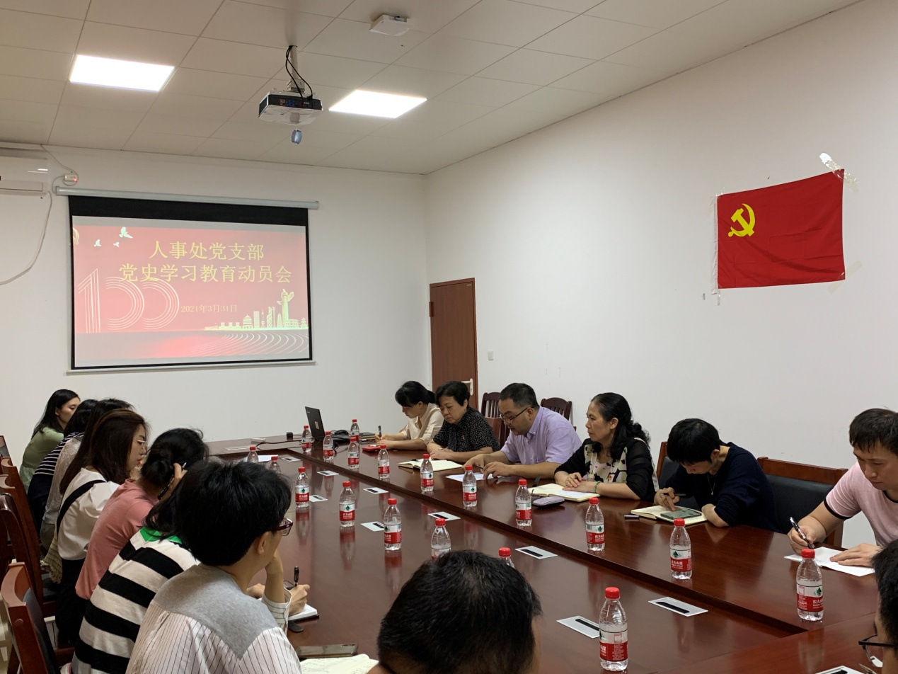 2021年3月31日上午,人事处党支部召开党史学习教育动员会。会议由支部书记宋业成主持,人事处党支部党员和入党积极分子共18人参加。