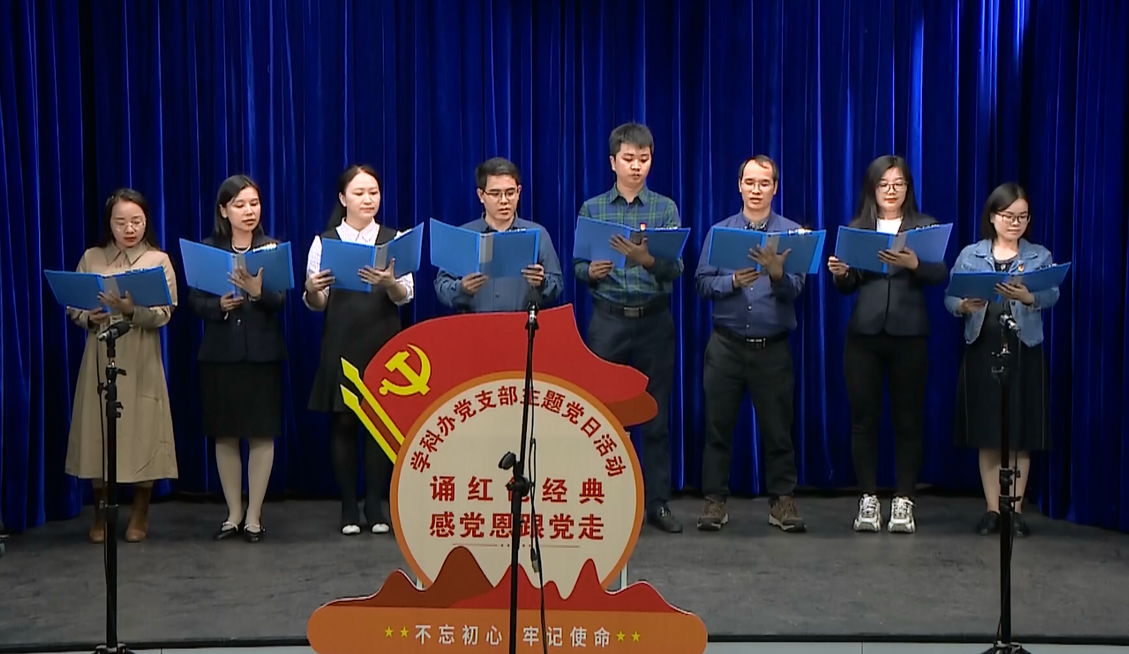 学科办党支部通过集体诵读红色经典诗词《春风拂拂地吹来》和《祖国啊,我亲爱的祖国》,抒发了浓厚的爱国情怀。大家表示,进一步坚定理想信念、赓续红色血脉,坚定不移听党话、矢志不渝跟党走,齐心协力为学校建设再作新贡献。