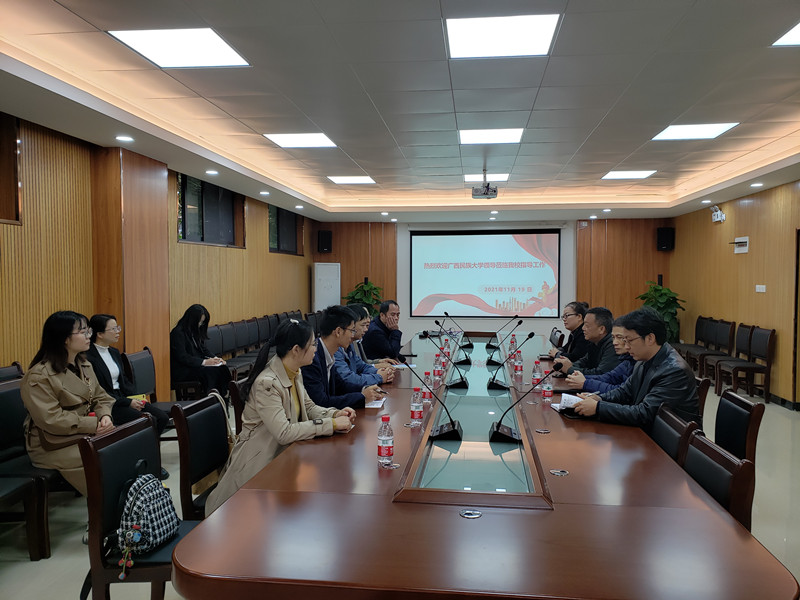 11月19日上午,广西民族大学化学化工学院党委书记黄钦、院长谭学才带领教师代表和职能部门代表6人来鸭脖后勤处调研实验室危险废弃物管理工作,后勤处处长冯第林、副处长黎锦源以及处办、校管科、水电科等相关工作人员接待了客人。