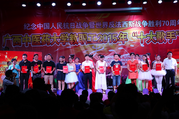 经过三个多小时的角逐,最终吴睿(护理学院工会)夺得比赛冠军和最佳台风奖,李雪婷(赛恩斯新药学院分工会)、李杭(一附院工会)分获亚军、季军,李春(护理学院工会)、韦卓(瑞康医院工会)、韦俞伽(机关二分工会)、谢家富(一附院工会)、李金荣(瑞康医院工会)、祁文(机关一分工会)、黄荣师(基础医学院分工会)获得“十大歌手”称号。