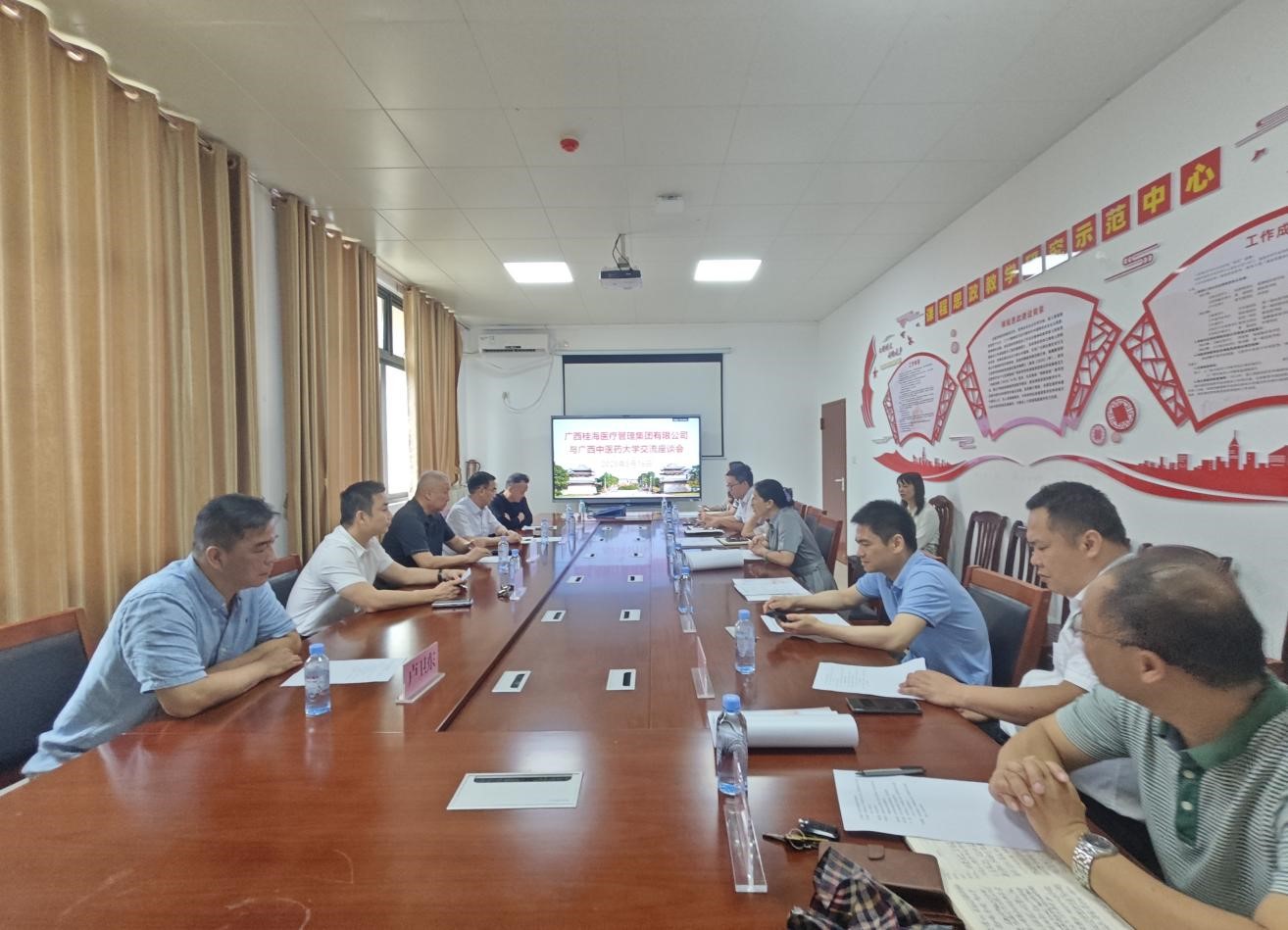 双方围绕防城港国际医学开放试验区的推进情况、广西桂海医院·国家机关离退休干部桂海康养基地项目的校企合作及成果转化等事项进行了深入交流。科技处、招生就业处、护理学院、中医药壮瑶医药研究院、高等职业技术学院、资产经营有限公司、百年乐制药有限公司等单位、部门负责人和有关科室负责人参加座谈。