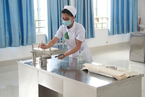 本次高职护理技能比赛分为四个项目:静脉输液、氧气吸入、无菌技术和鼻饲法。比赛共设有九个赛场,18名裁判分别由来自鸭脖附属医院、区医院等多家医院的护理部主任及护理专家担任。鸭脖三个年级的高职生共121名选手参赛。