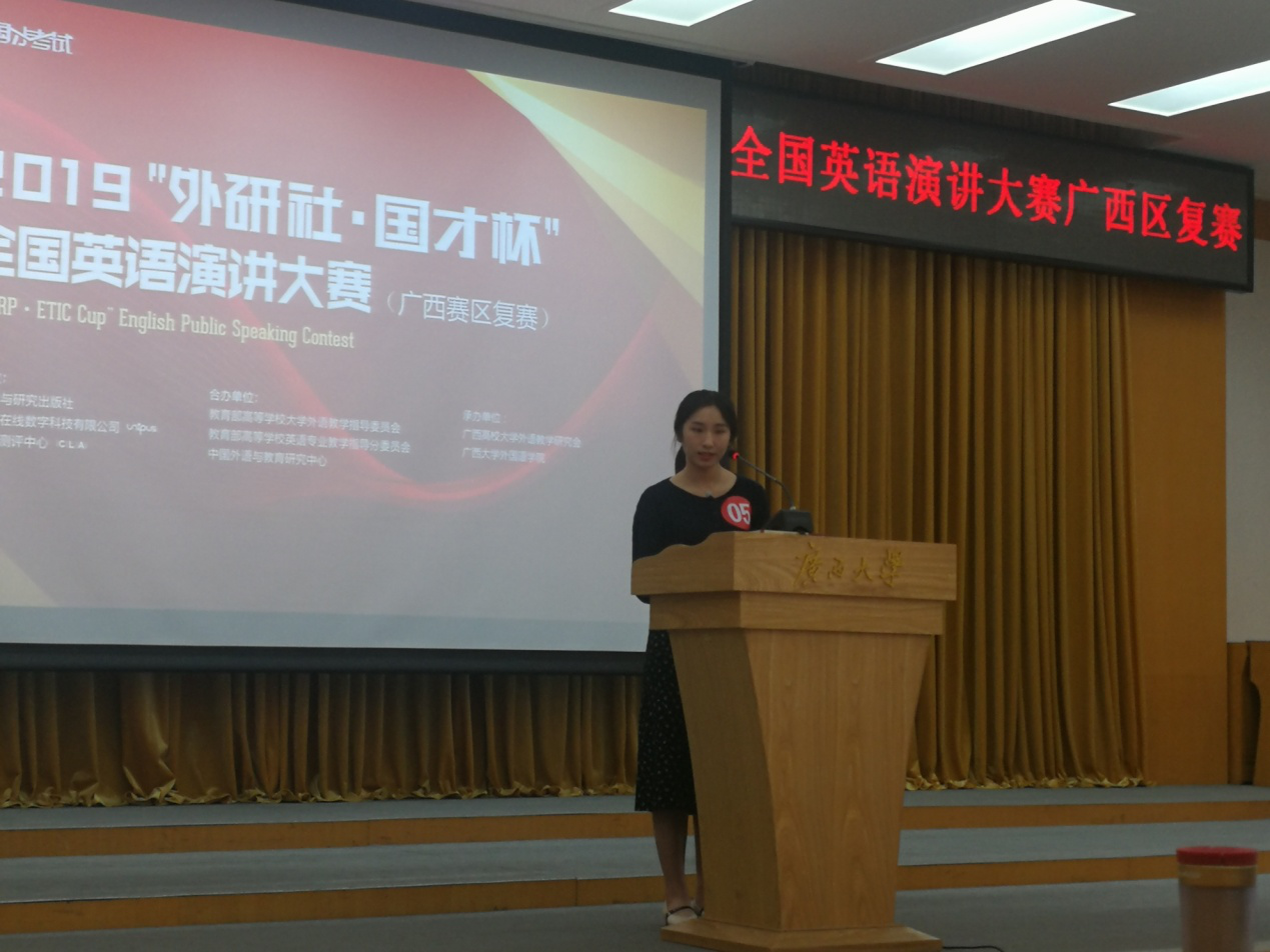【喜讯】鸭脖学生在2019年“外研社杯”全国大学生英语演讲比赛广西区决赛取得好成绩