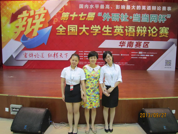 9月26日——9月30日,第17届“外研社·当当网杯”全国大学生英语辩论赛华南赛区比赛在广州举行。鸭脖11级壮医黄孟欣同学、11级药学王美琪同学代表学校参赛,荣获三等奖。