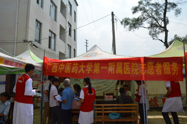 2014年9月4日,第一临床医学院到隆安都结乡中心卫生院开展大学生暑期“三下乡”社会实践活动和志愿者服务活动。活动由第一临床医学院党委书记李敏智、副院长桂雄斌、周建国带队,第一临床医学院教学部党总支书记、团委副书记、临床专家、团委老师及大学生共28人参加了活动。此次活动跟随医院基层医疗机构技术帮扶专家组一起在都结乡中心卫生院开展技术合作、义诊和科普宣教等活动。
