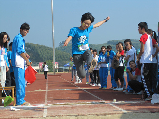 运动员跳远赛场激情一跳