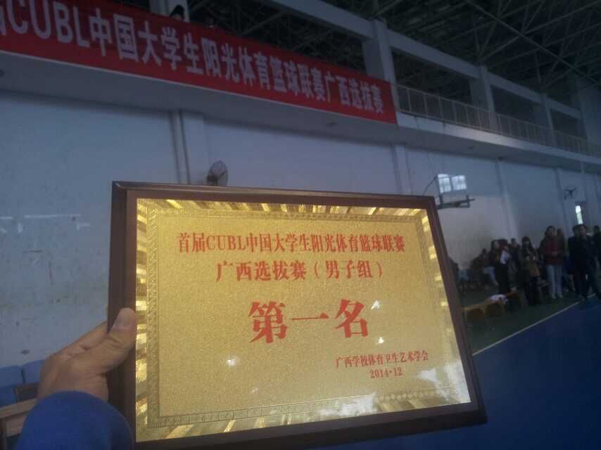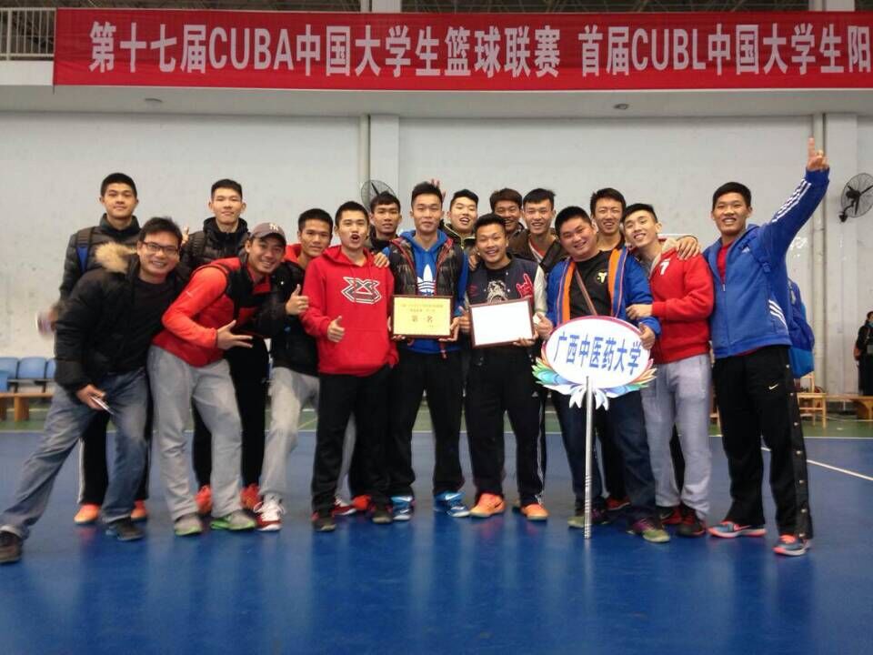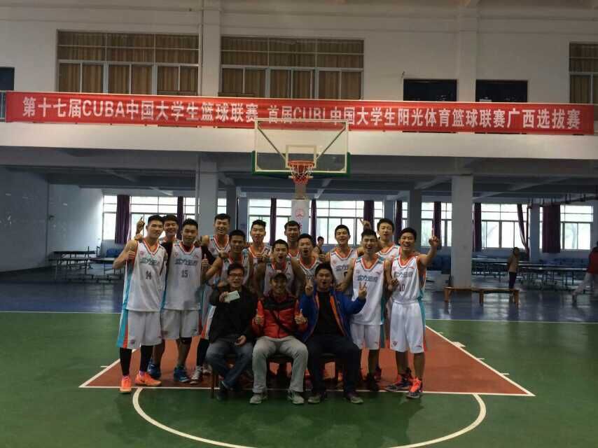 第十七届CUBA中国大学生篮球联赛 首届CUBL中国大学生阳光体育篮球联赛广西选拔赛,于2014年12月25在广西师范大学雁山校区比赛落下帷幕。本次比赛由广西壮族自治区教育厅体卫处主办,来自全区13所大学的篮球球代表队参加CUBL比赛。经过六天九场比赛激烈的角逐,鸭脖男子篮球在领队石荣群副主任、主教练丘大为老师的带领下全队上下齐心协力,斗志昂扬,迎难而上,无畏伤病,拼搏到比赛最后一秒钟,以精神饱满的状态去迎战每一场比赛,最终以全胜不败的战绩摘得了本次比赛的桂冠,获得代表广西高校参加CUBL中国大学生阳光体育篮球联赛全国总决赛的资格。